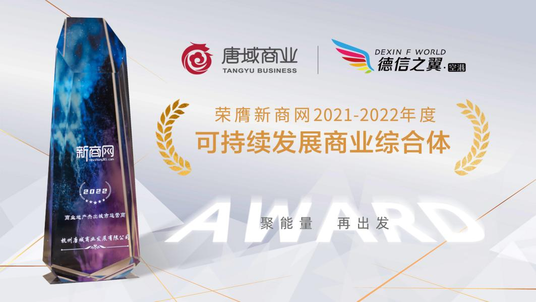 近日,由两大商业巨头——联商网主办的“2022年度华东商业年会”及新商网主办的“2022年度商业地产峰会”分别落下帷幕。唐域商业凭借过硬实力,披荆斩棘,从众多商业运营商中脱颖而出,分获联商网2022年度杰出商业运营商、新商网2022年度商业地产杰出城市运营商,旗下空港57365z线路检测中心之翼项目斩获新商网2021-2022年度可持续发展商业综合体,共计三项重磅大奖!